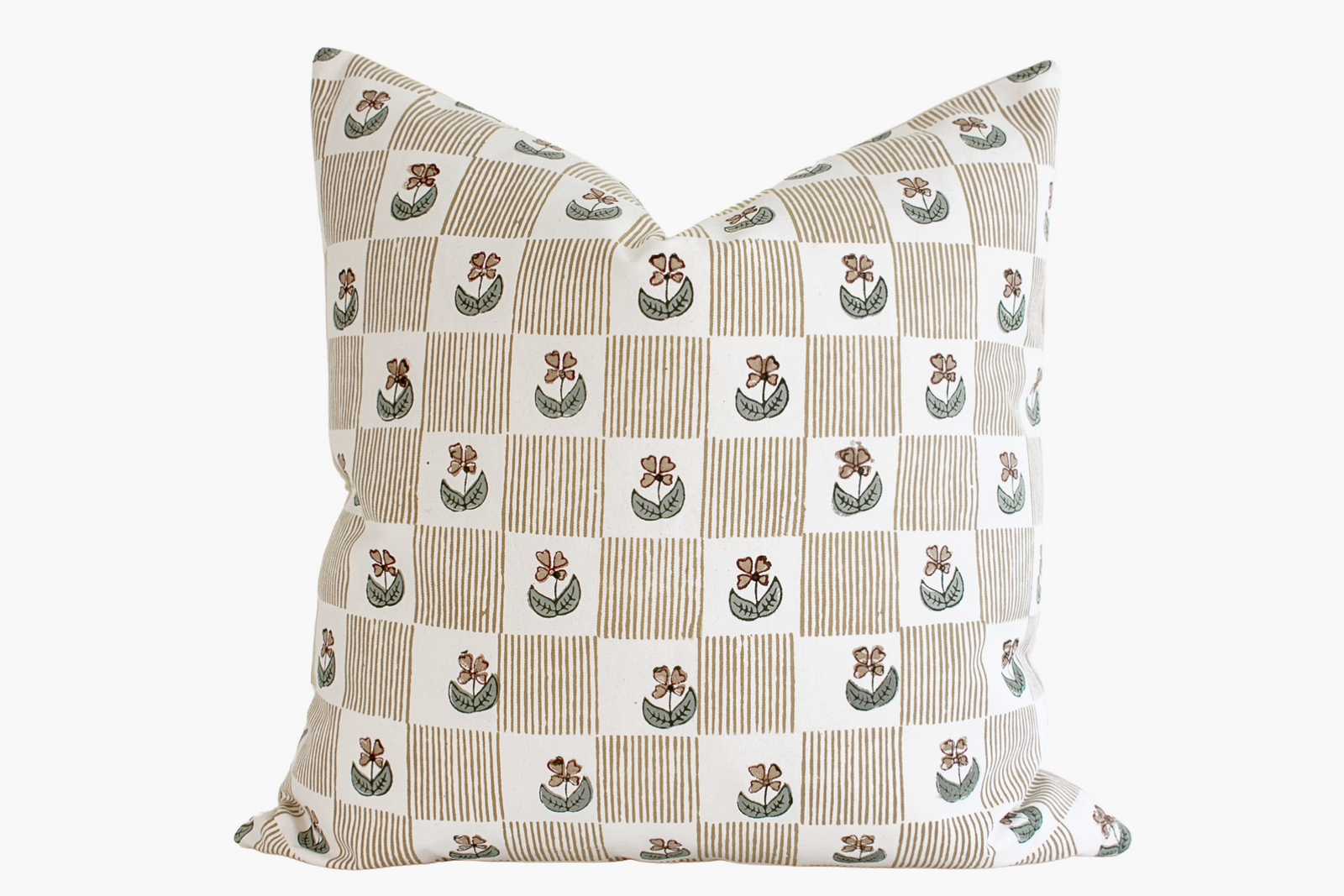 Cindy Indian Block Print Pillow Cover – Floral and Stripe Checker