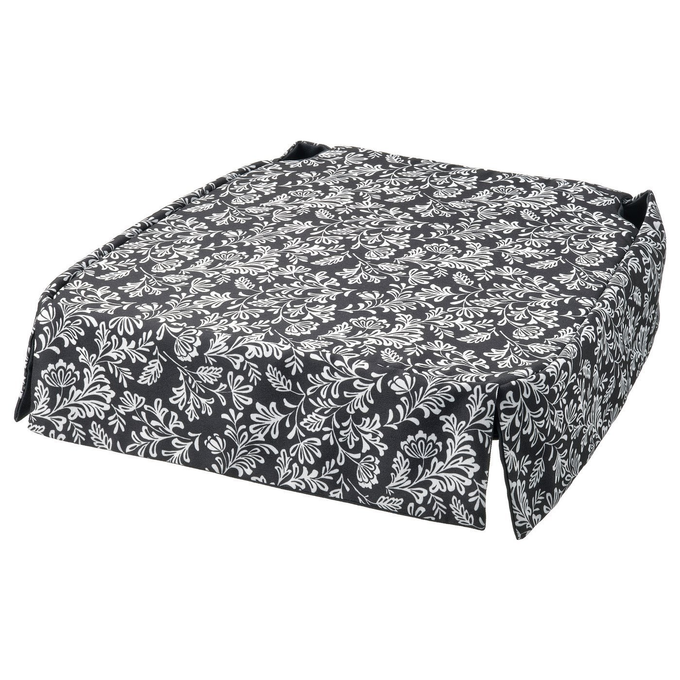 DVÄRGDUNÖRT Chair pad – grey/white 42/35x42x4 cm (17/14x17x1 5/8 “). The 4-sided skirt makes your chair look more dressed up from all angles. The traditional floral pattern adds a decorative feel to the room. The pad offers 4 cm of cushioned comfort.
