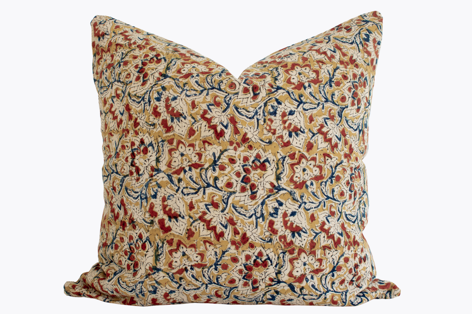 Our Indian Block Print Pillows are a true labor of love. We designed each one and had them hand block printed by our talented artisans on luxuriously soft, 100% natural linen. Their rich colors and intricate details elevate any space and add a gorgeous cultural dimension to any room!
