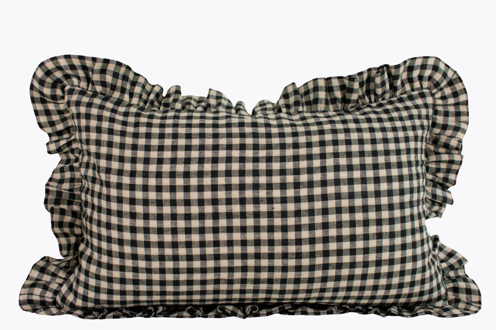 Ruffle Edge Linen Lumbar Pillow Cover – Beige and Black Gingham